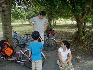 Disitu kita dateng, sewa sepeda n dikasi map Pulau Ubin, kita jalan sendiri sambil ngeliat Map-nya, disitu ditulis kira-kira objek apa yang bisa kita datangi. Saat kita istirahat di pinggir pantai, kakak ipar gw karena gak ada tempat duduk, dia gelar tuh peta dan didudukin, kakak gw ngomel sambil ngomong "Loh, kok petanya didudukin ??!!??", pada saat itu aku sedang jeprat-jepret sana sini, n saat aku jepret ke mereka, pas waktu kakakku lagi ngomel.....